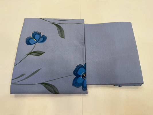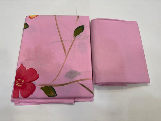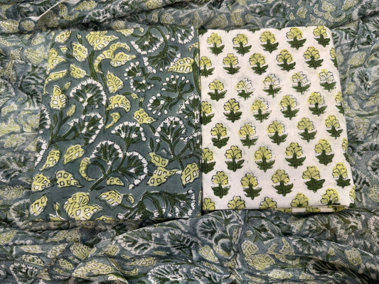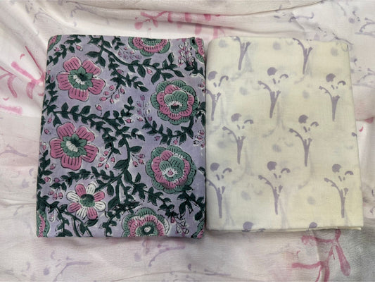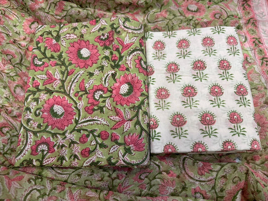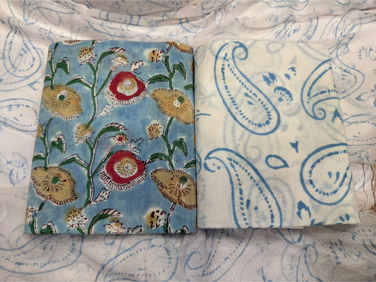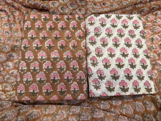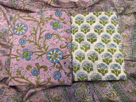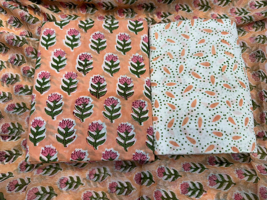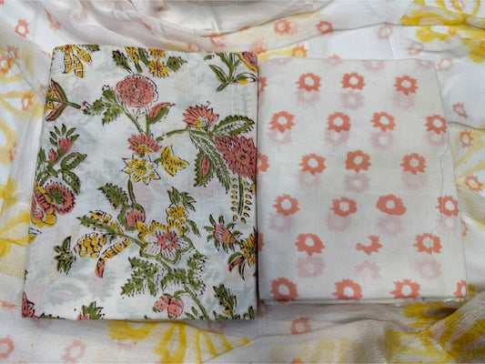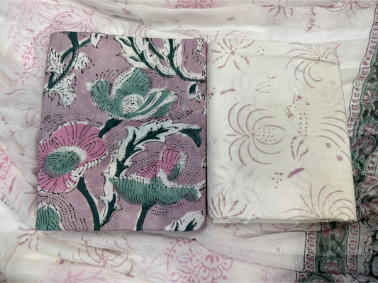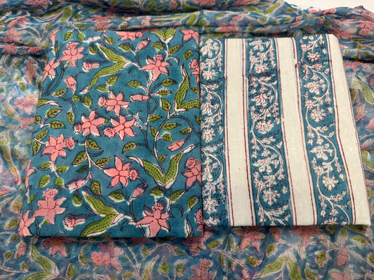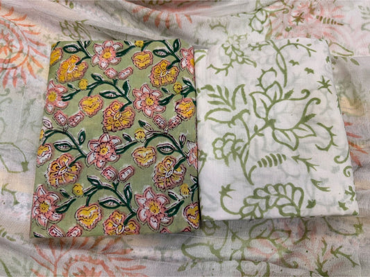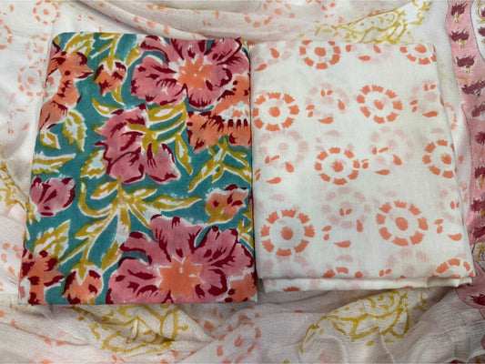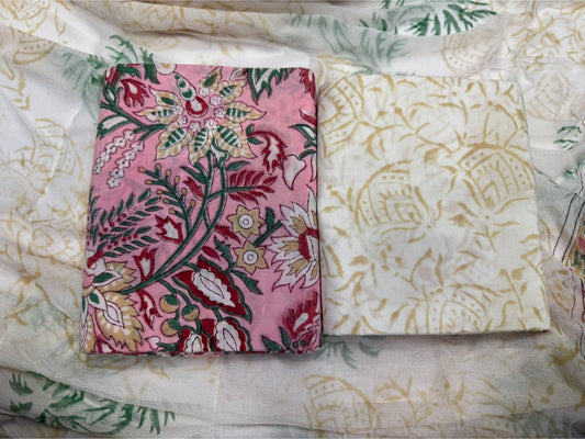 Hand Block Printed Unstitched Cotton Suit with Chiffon Dupatta