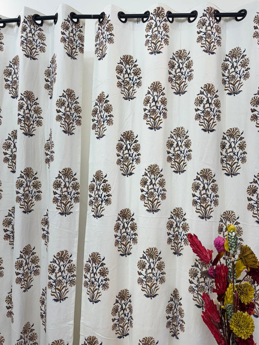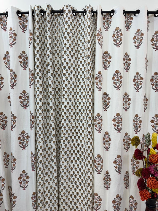 Natural Hue Bud Cotton Curtains 7ft Set(2pcs)