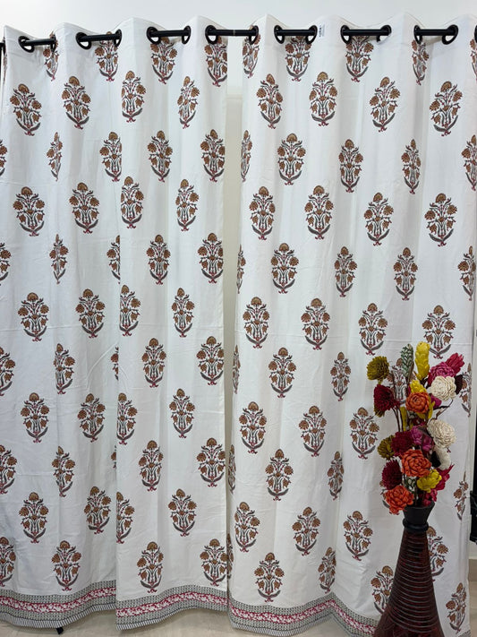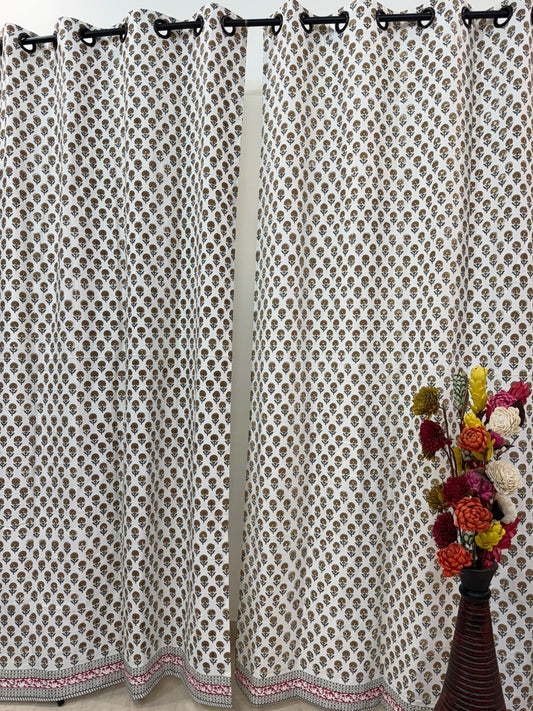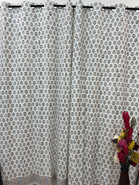 Paisley Petal Cotton Curtains 7ft Set(2pcs)