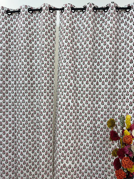 Pink Booti Cotton Curtains 7ft Set(2pcs)