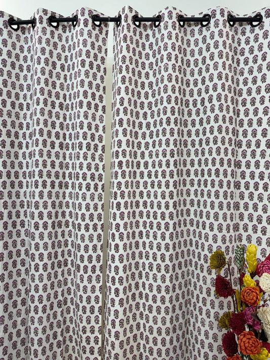 Purple Booti Cotton Curtains 7ft Set(2pcs)
