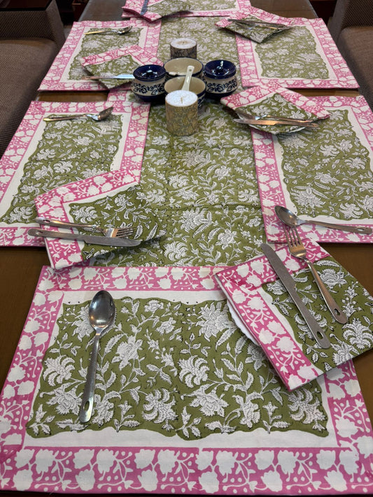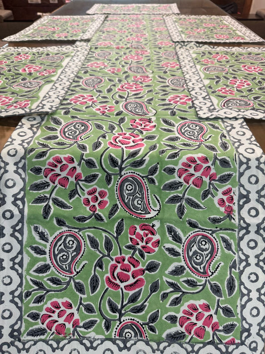 Green Meadow Dining Set - Runner + 6 Mats + 6 Napkins