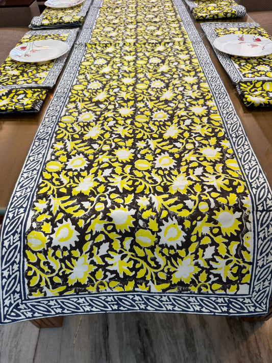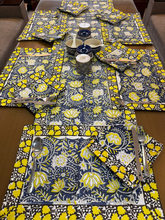 Midnight Yellow Dining Set - Runner + 6 Mats + 6 Napkins
