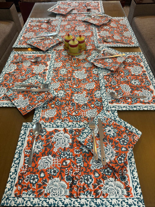 Orange Meadows Dining Set - Runner + 6 Mats + 6 Napkins