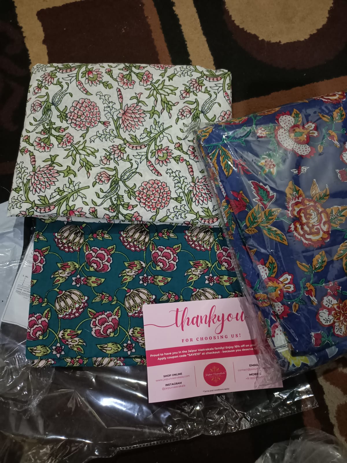 Thanks so much team Jaipur Vastrakala, I got my parcel yesterday. So happy beautiful prints and material. .... So happy, Love from Indore Madhya Pradesh ❤️