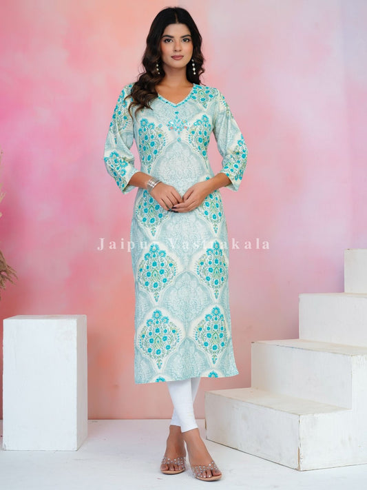 3Green Peacock Shimmer Embroidery Anarkali Suit
