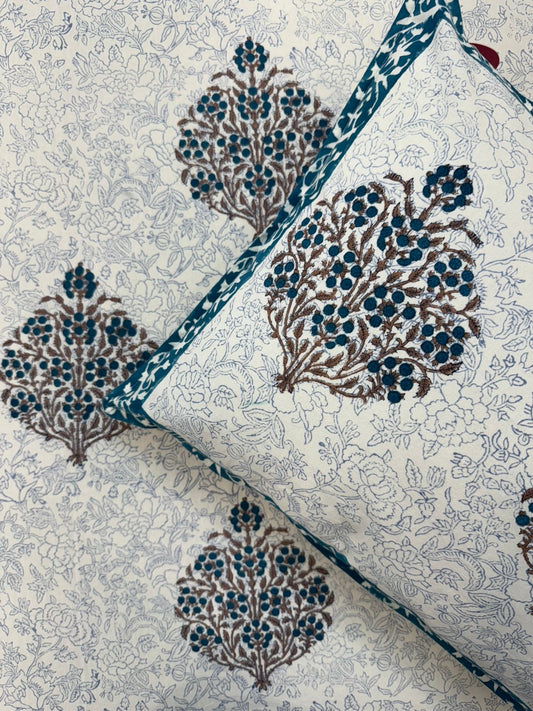 Azure Booti King Bedsheet with Pillow Covers