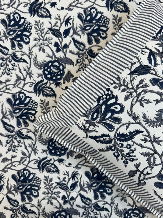 Deep Blue Flora King Bedsheet with Pillow Covers