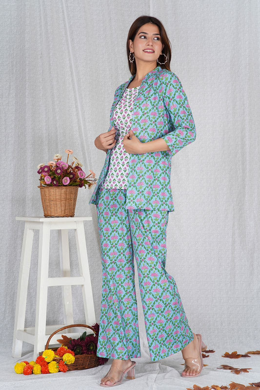 4Blue Lotus Charm Three Piece Cotton Co-ord Set
