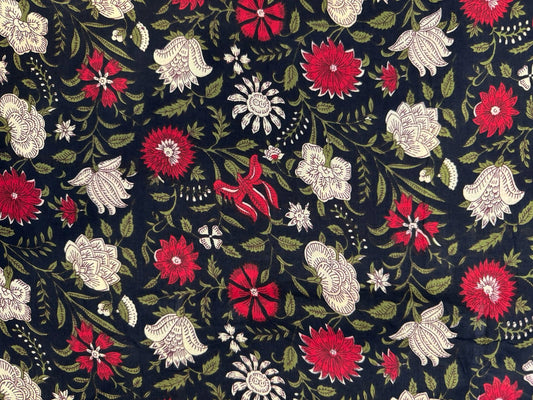 Black Blooms Cotton Fabric