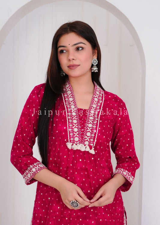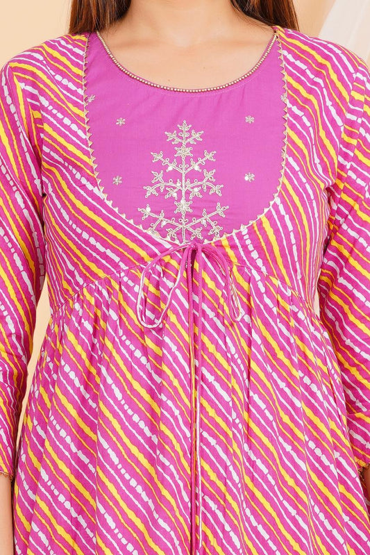 2Pink Shrug Lehariya Embroidery Kurta Set