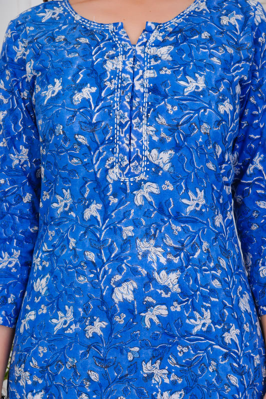 2Neon Blue Floral Sleeveless Kurta Pant Set