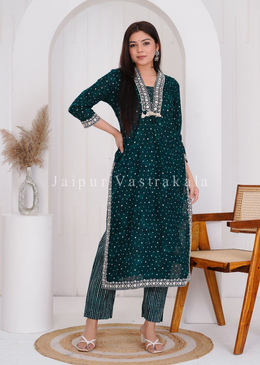 Shopping for kurta sets for women at Jaipur Vastrakala is an enjoyable experience and you will not regret your decision later on. We employ creative and skilled artisans. More than just attire, our kurta collection is a celebration of India’s cultural vibrancy.
