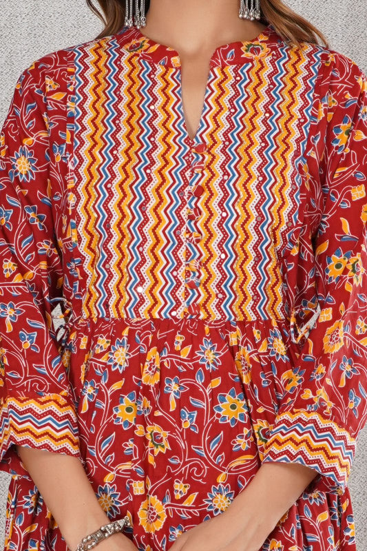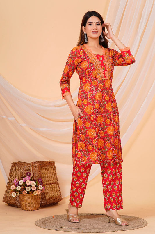 2Red Mustard Blossom Kurta Pant Set