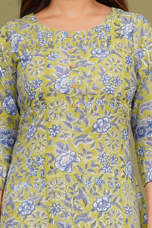 2Green Blossom Embroidery Kurta Pant Set