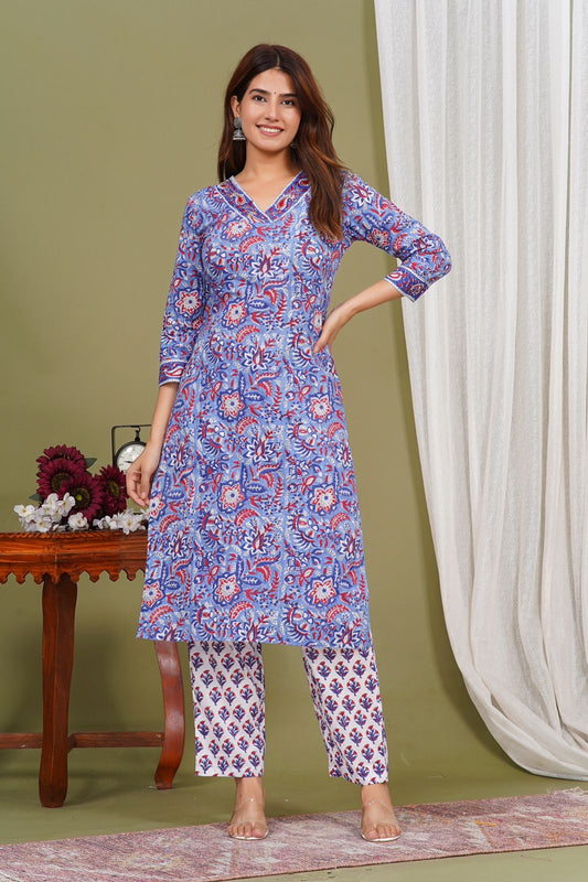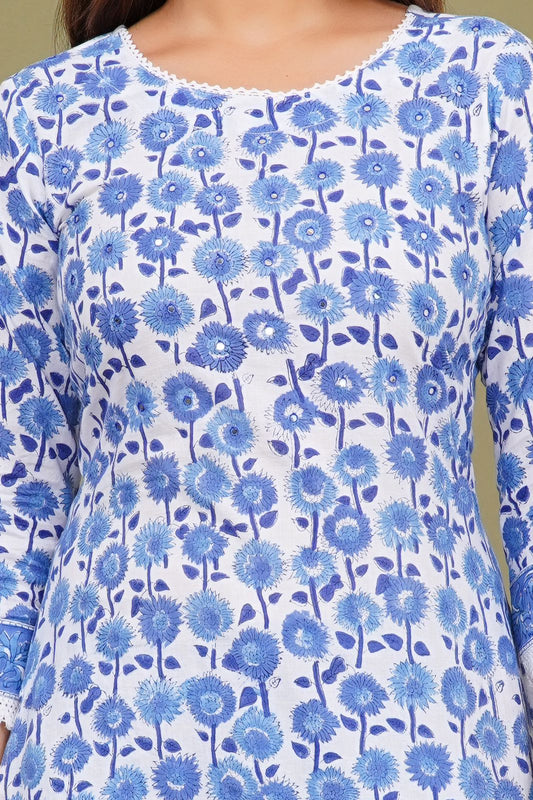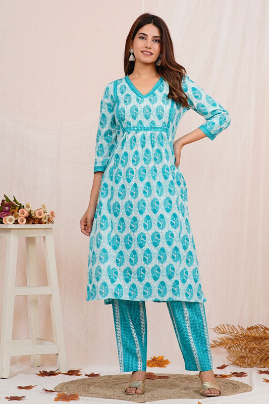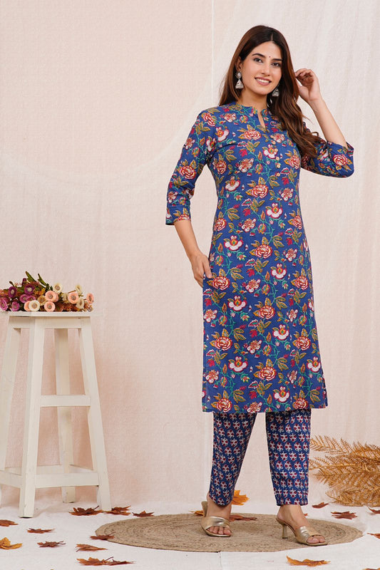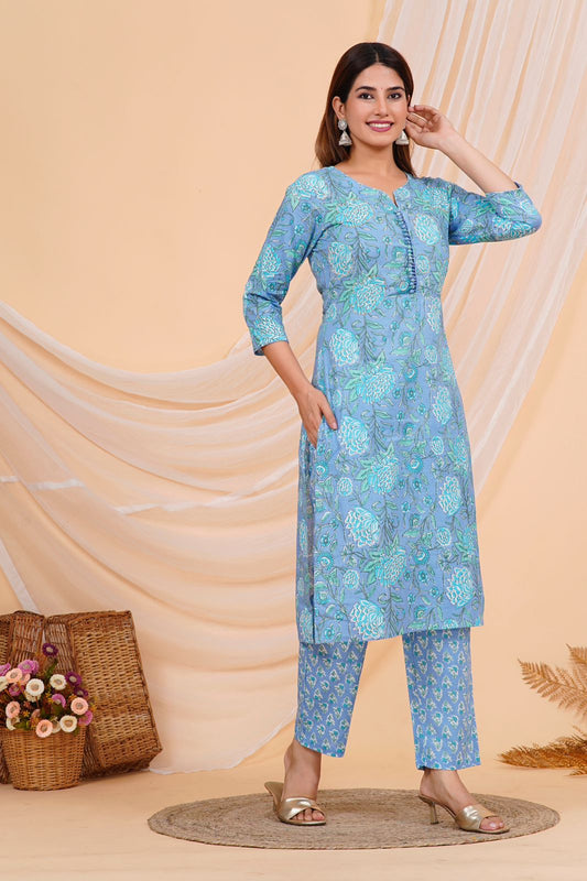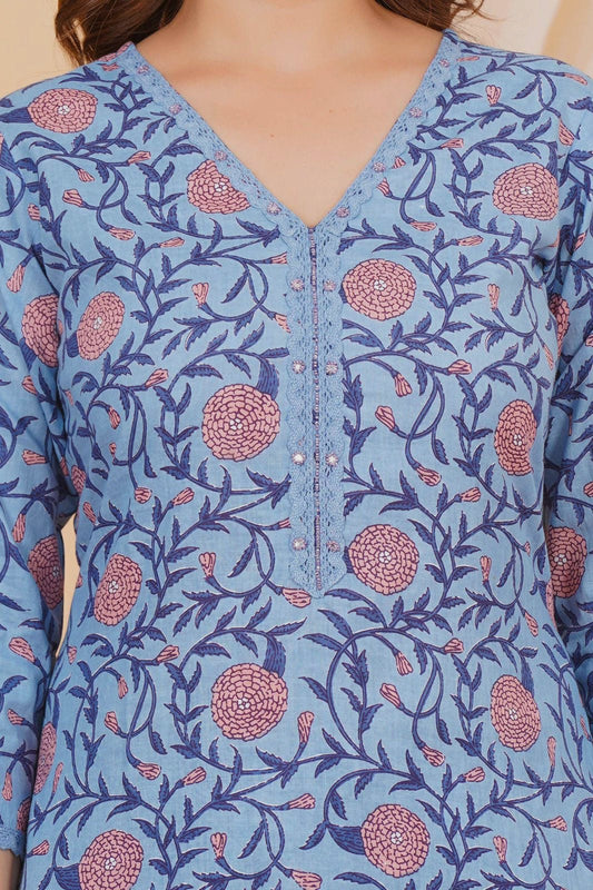 2Blue Blossom Charm Kurta Pant Set