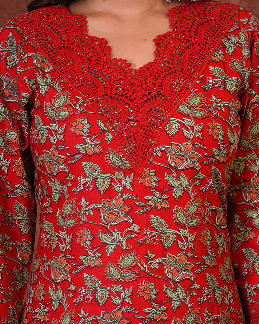 Scarlet Red Blossom Kurta Pant Set