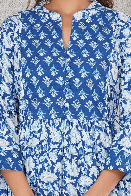 Blue White Delight A-line Embroidery Kurta Pant Set