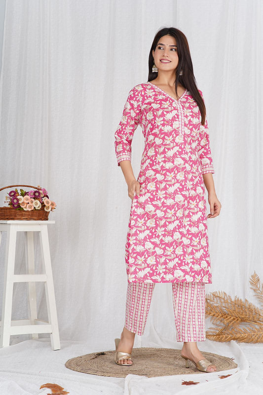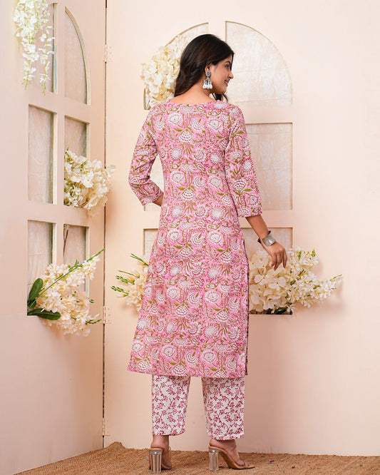 Pink Meadows Embroidery Kurta Pant Set