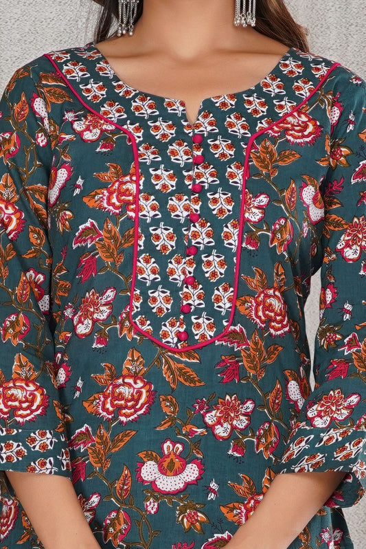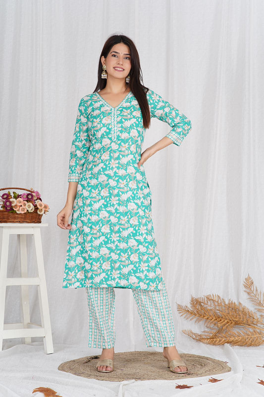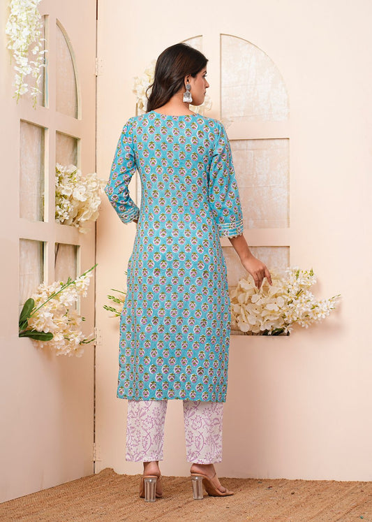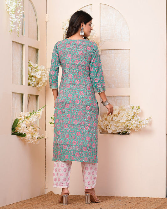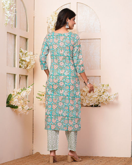 2Teal Meadow Embroidery Kurta Pant Set