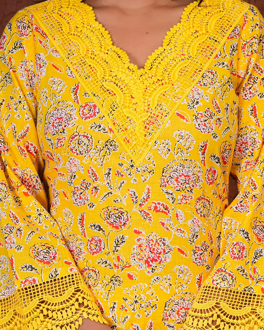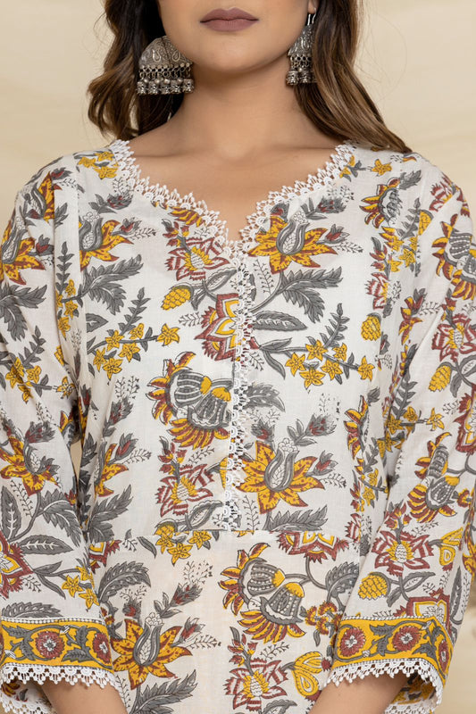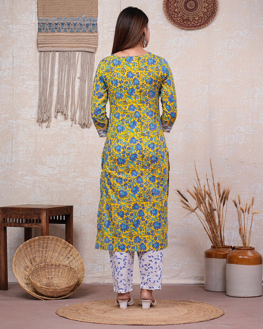 Yellow Meadow Floral Kurta Pant Set