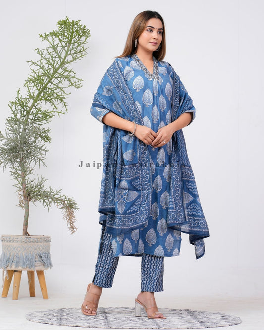 Jaipur Vastrakala’s cotton suits are made using premium-quality cotton that keeps you cool and comfortable while offering endless styling possibilities. Pair them with contrasting dupattas, heavy jewelry, or simple juttis—the versatility is endless.
