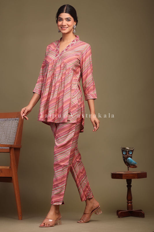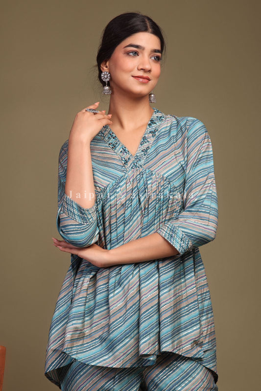 2Tranquil Teal-Green Stripes Muslin Co-ord Set