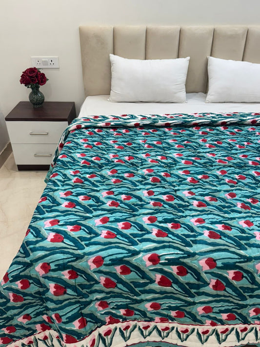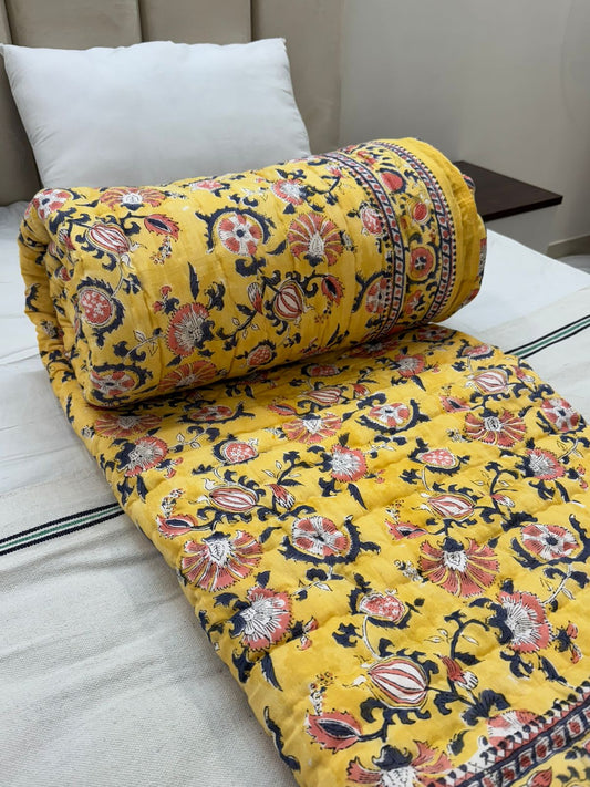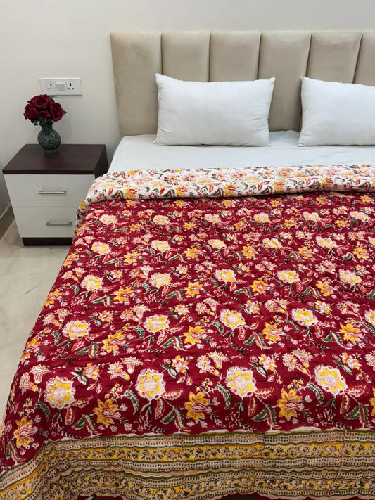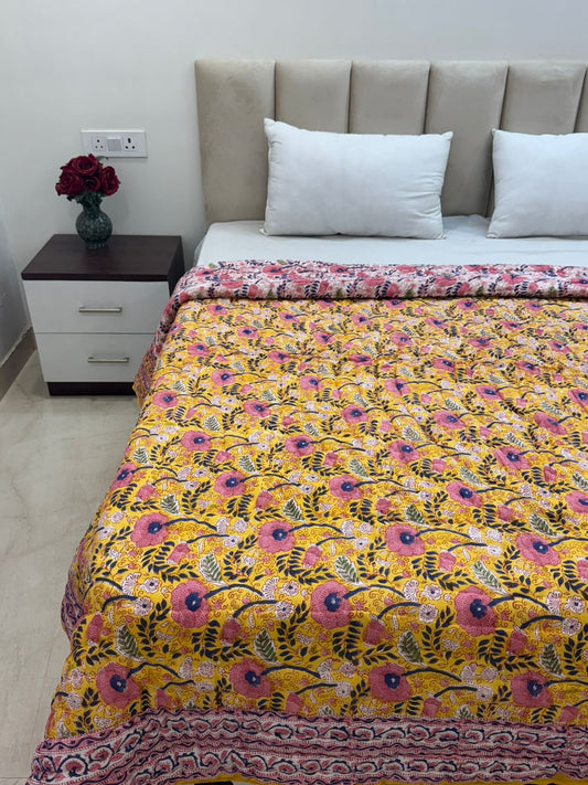 Sunlit Wildflowers Reversible Double Bed Quilt