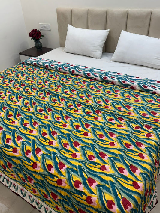 Yellow Tulips Strokes Reversible Double Bed Quilt