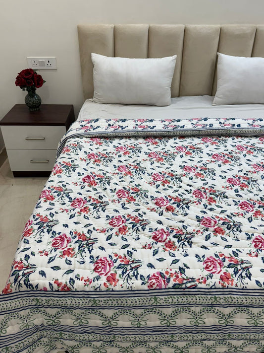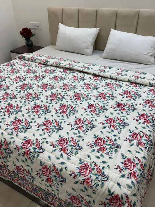 Rose Vines Bouquet Reversible Double Bed Quilt