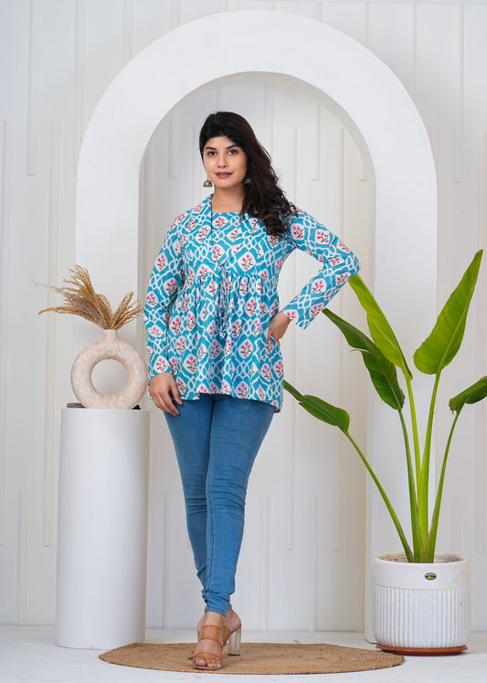 Printed Short Kurtis: From geometric patterns to floral prints, these kurtas will add vibrancy and freshness to your wardrobe.