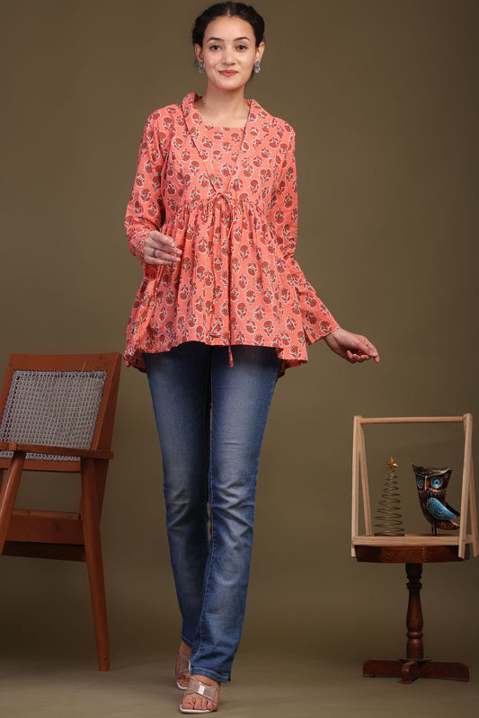 Short Kurtas for women offer a contemporary vibe while rooted in Indian culture. Ladies who prefer to experiment with new trends without negotiating with comfort must try this apparel. With a shorter hemline, you can easily pair it with any bottom.