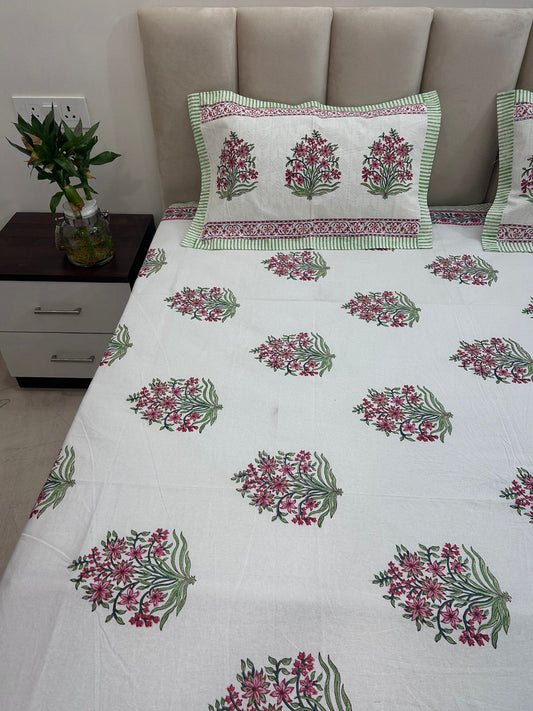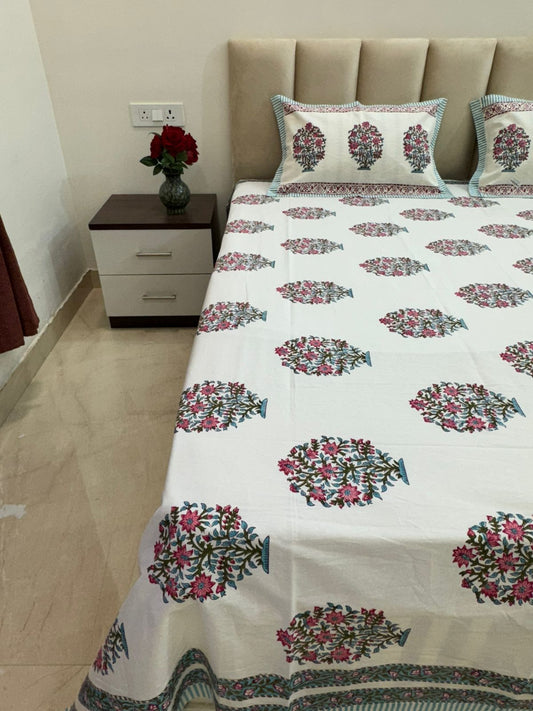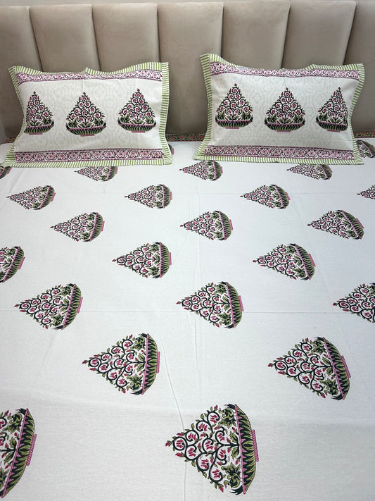 Pink Boota Harmony Double Bedsheet with Pillow Covers
