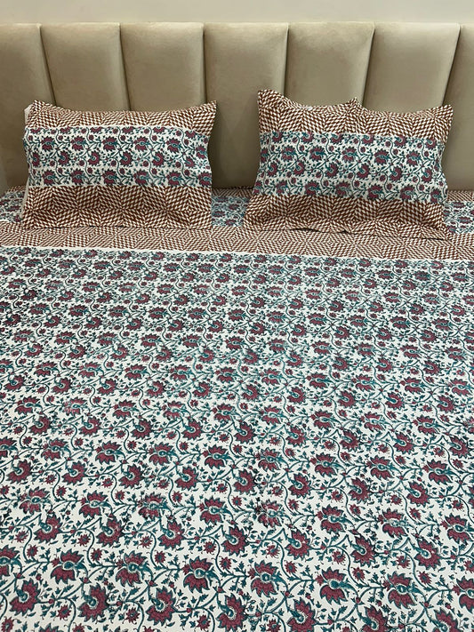 Mystic Maroon Jaal Print Cotton Double Bedsheet