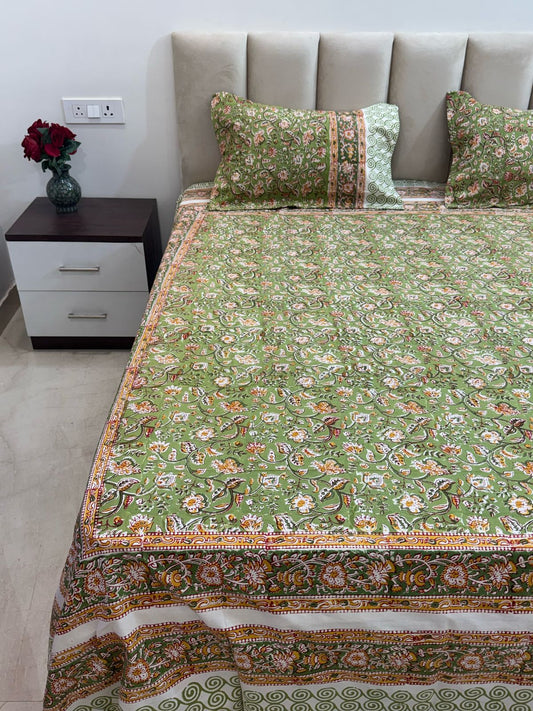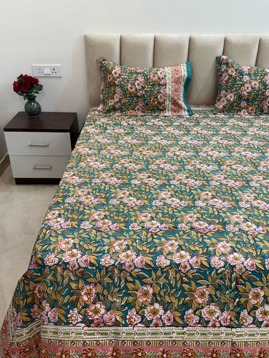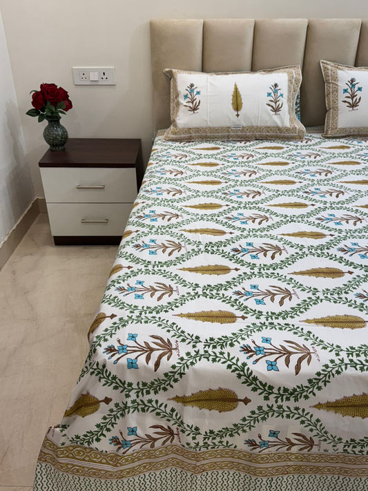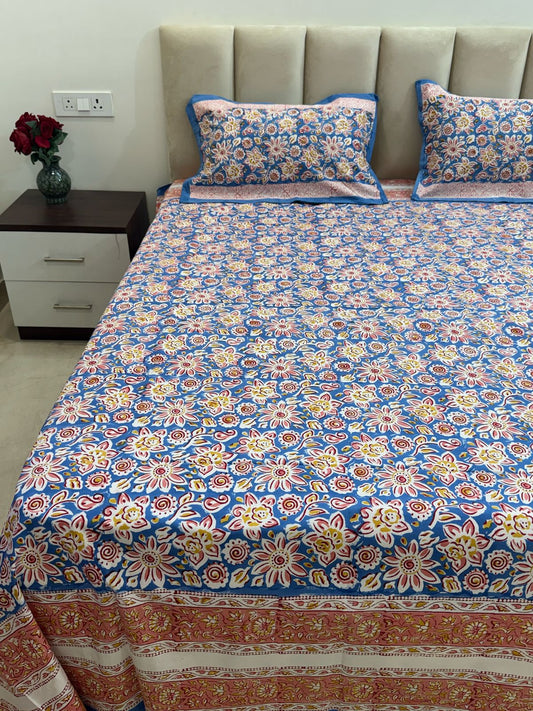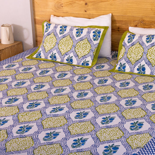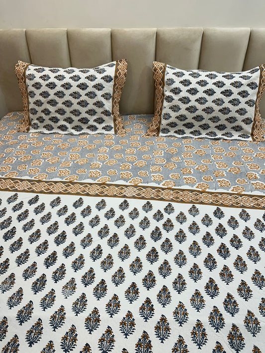 Mustard and Blue Bliss Cotton Double Bedsheet