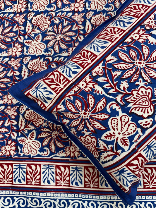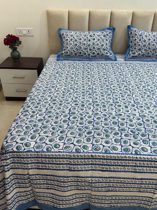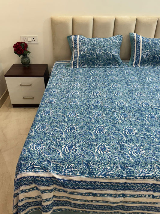 Royal Blue Trace Double Bedsheet with Pillow Covers