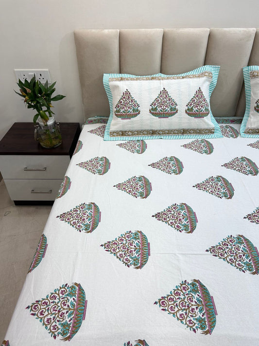Turquoise Pink Whisper Double Bedsheet with Pillow Covers