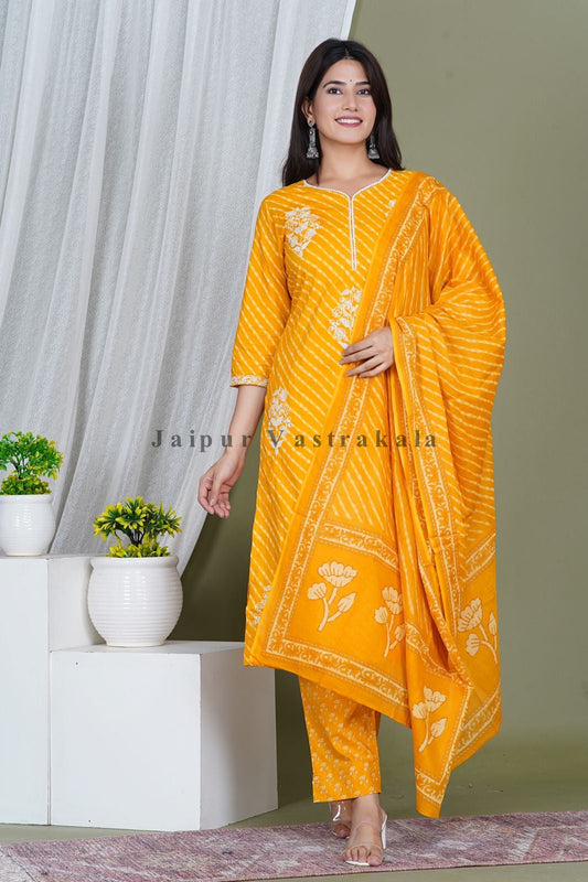 Sunshine Yellow Lehariya Cotton Dupatta Set