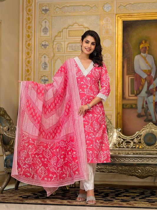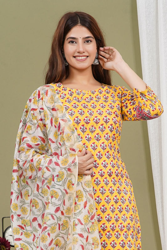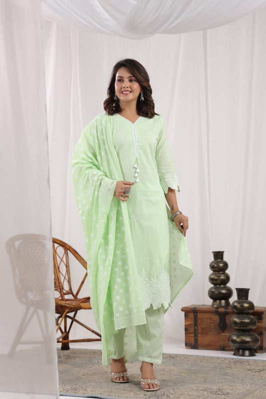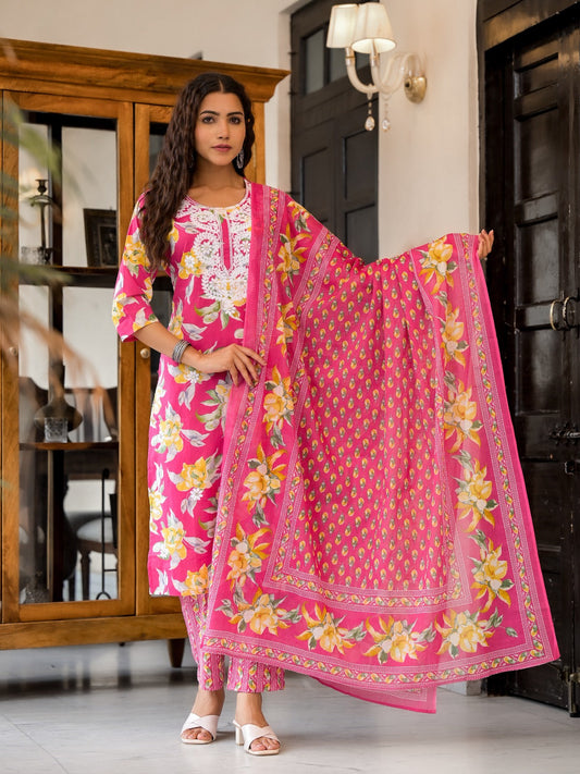 Radiant Flora Embroidery Cotton Dupatta Suit