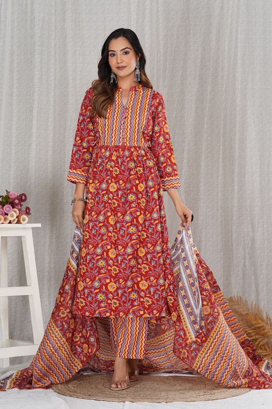 Rustic Floral Elegance A-line Cotton Embroidery Suit