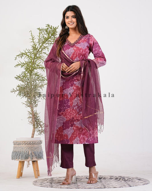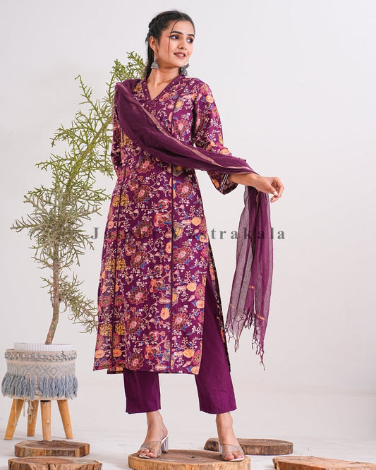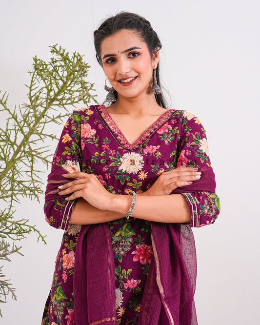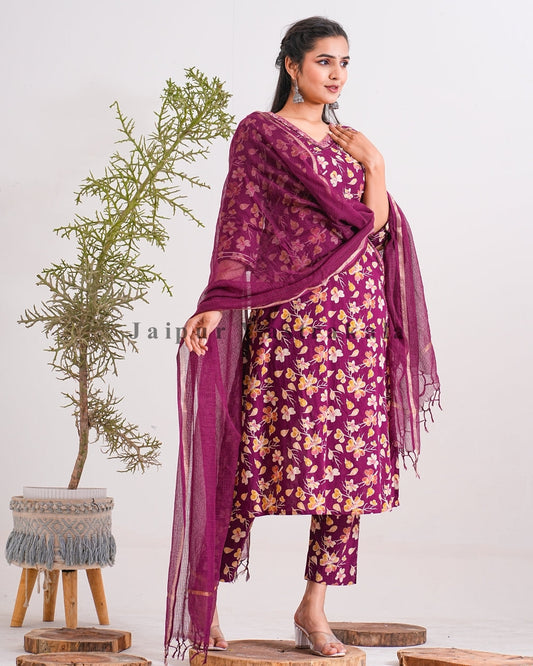 Maroon Flora Retreatl Kota Doriya Dupatta Suit
