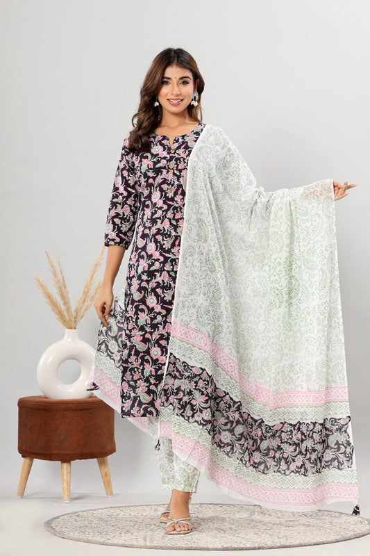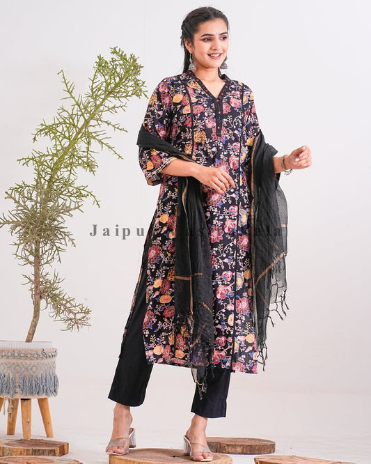 Midnight Black Petal Kota Doriya Dupatta Suit