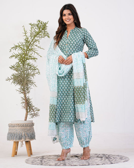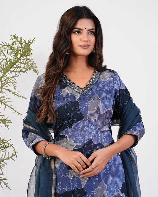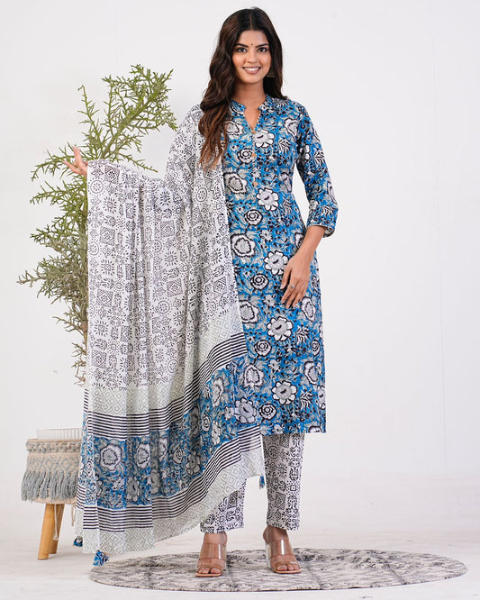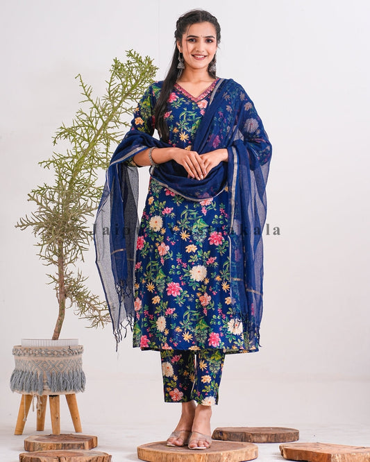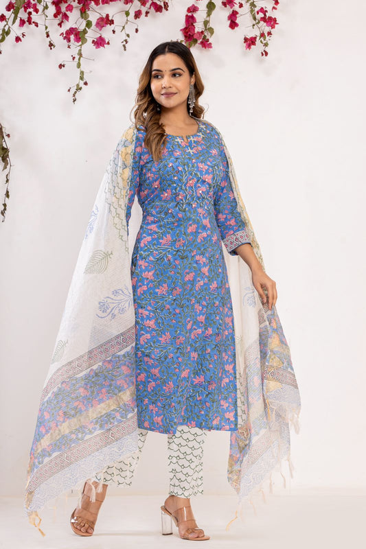 Blue Floral Retreat Kota Doriya Dupatta Suit