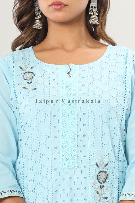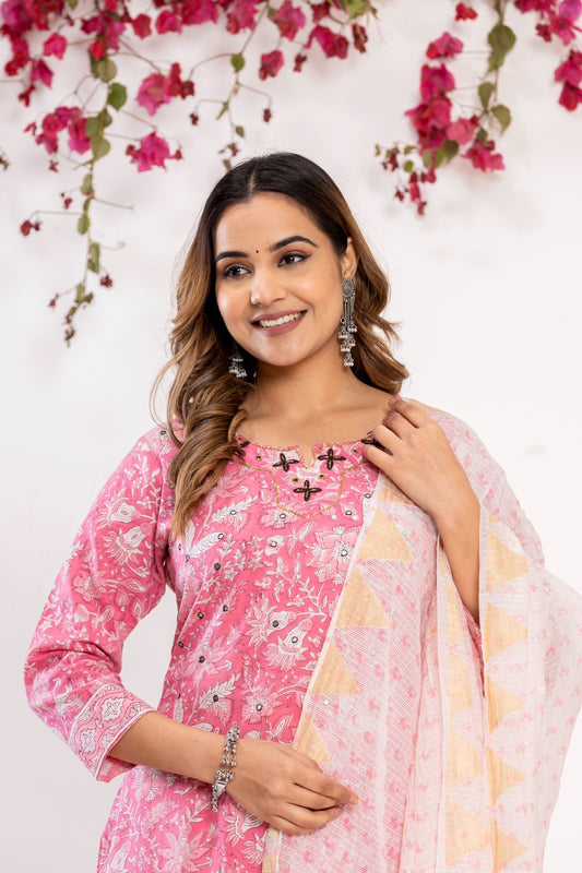 Blue & Pink Melody Embroidery Cotton Dupatta Suit
