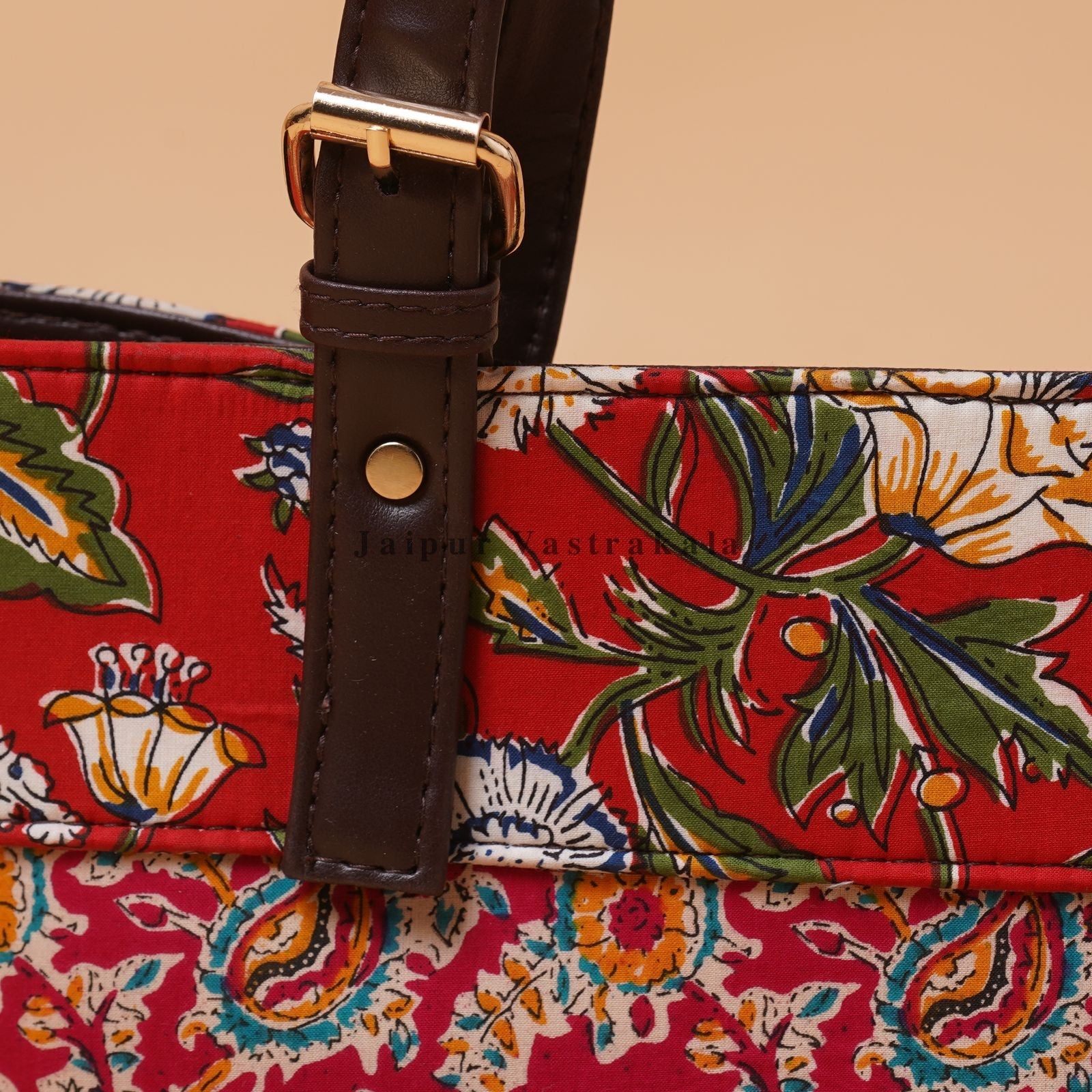 Cotton Printed Tote Bag with Leather Handle