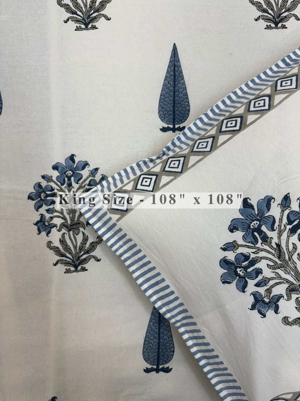 Hand Block Printed King Size Bedsheet with Pillow Covers