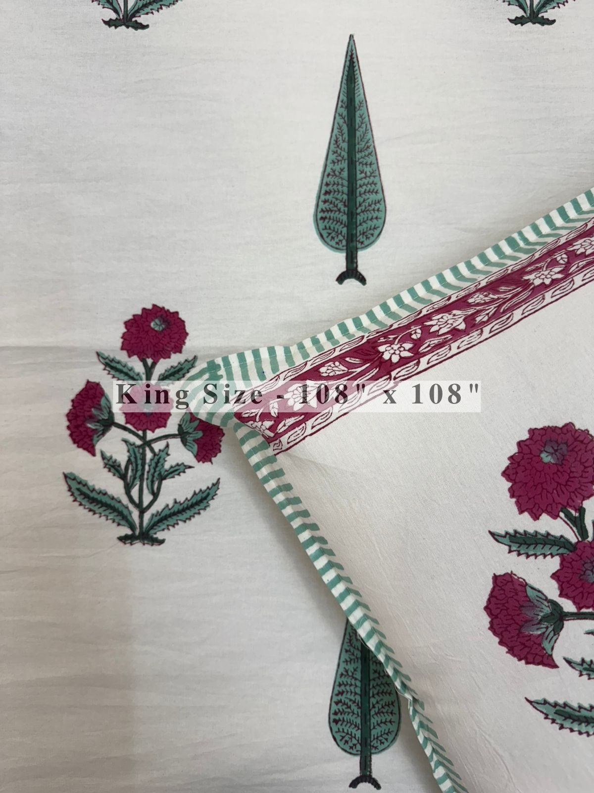Hand Block Printed King Size Bedsheet with Pillow Covers