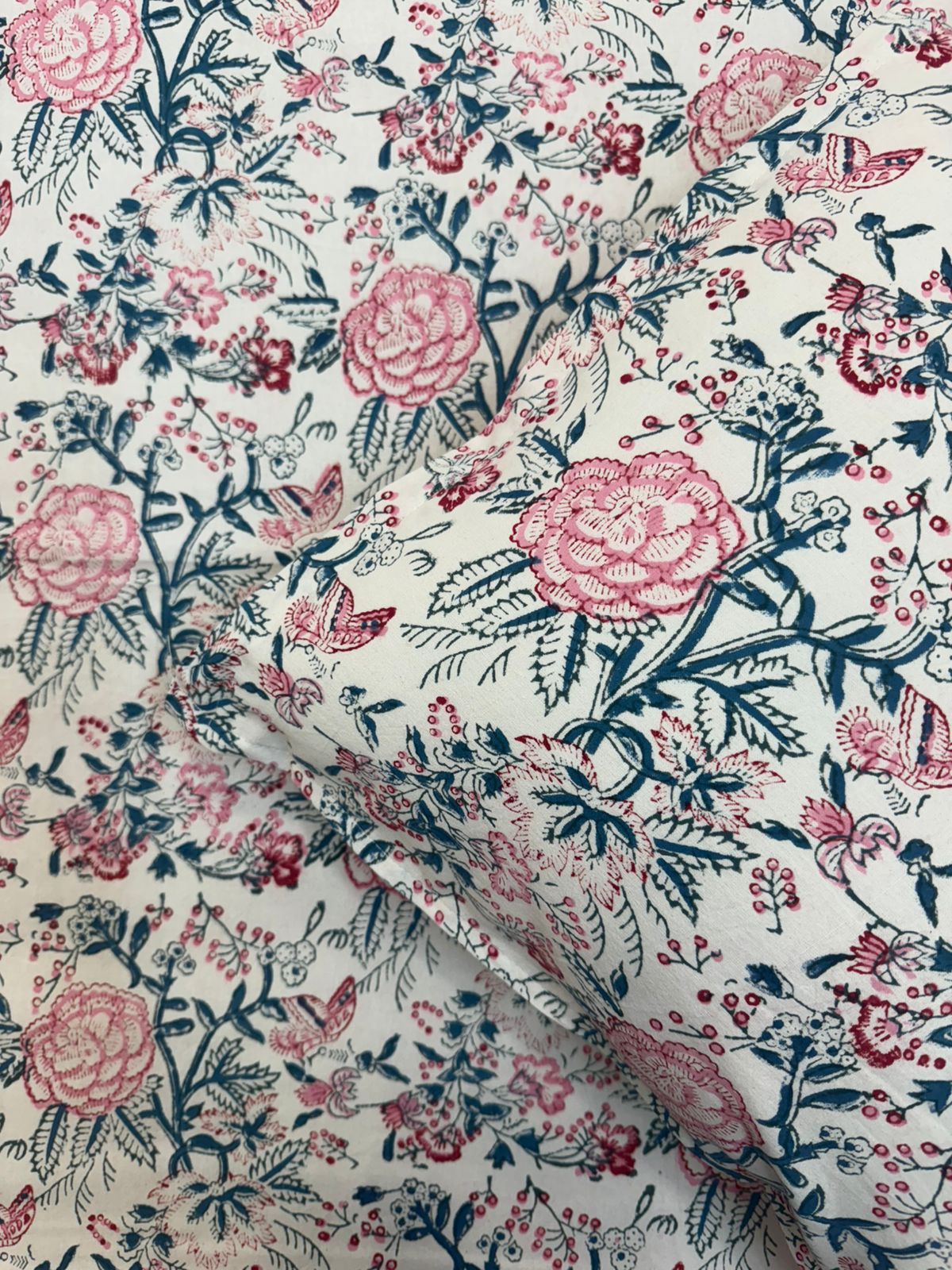 Hand Block Printed Double Bedsheet with Pillow Covers