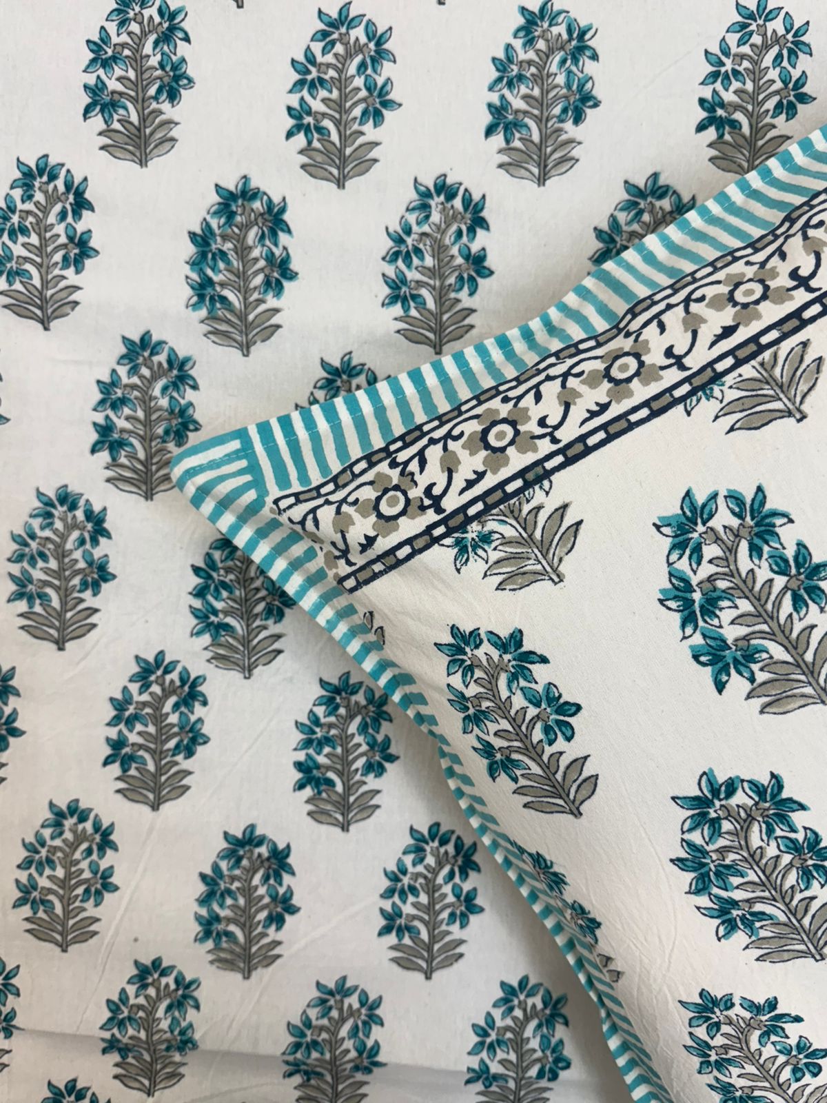 Azure Leaf Booti Double Bedsheet with Pillow Covers