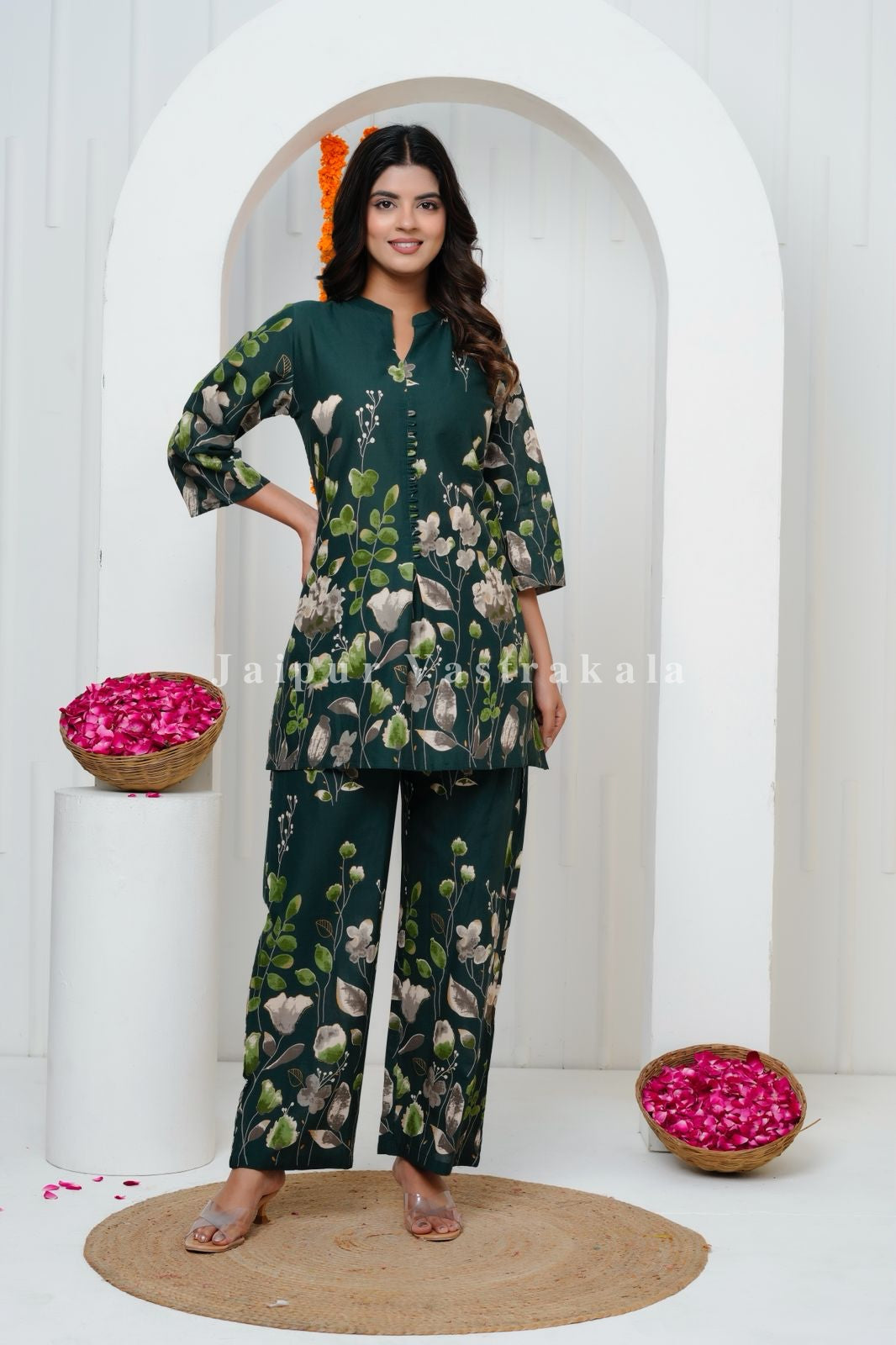 Green Tulip Garden Cotton Co-ord Set